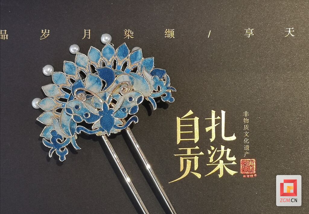 “本次獲得金獎(jiǎng)的扎染發(fā)釵(簪)設(shè)計(jì)靈感來(lái)源于古代漢族婦女的首飾,選用天然桑蠶絲面料,采用植物靛藍(lán)染就而成,或點(diǎn)綴或鑲嵌于精工制作的扎染發(fā)釵(簪)之上,宛如華麗之中一抹淡雅,層疊之間幾分深邃,色彩斑駁,韻味高雅,是傳統(tǒng)扎染工藝的又一次創(chuàng)新?!惫径麻L(zhǎng)兼總經(jīng)理、“自貢扎染技藝”傳承人李娟告訴記者,長(zhǎng)期以來(lái)團(tuán)隊(duì)致力于扎染工藝的大膽創(chuàng)新,不僅開(kāi)發(fā)了更多扎染精品,大力倡導(dǎo)植物染,弘揚(yáng)環(huán)保理念,還開(kāi)發(fā)出扎染胸針、筆記本、掛飾、枕套、眼罩、時(shí)空龍騎士玩偶等20余種貼近生活、實(shí)用性強(qiáng)的文創(chuàng)品。