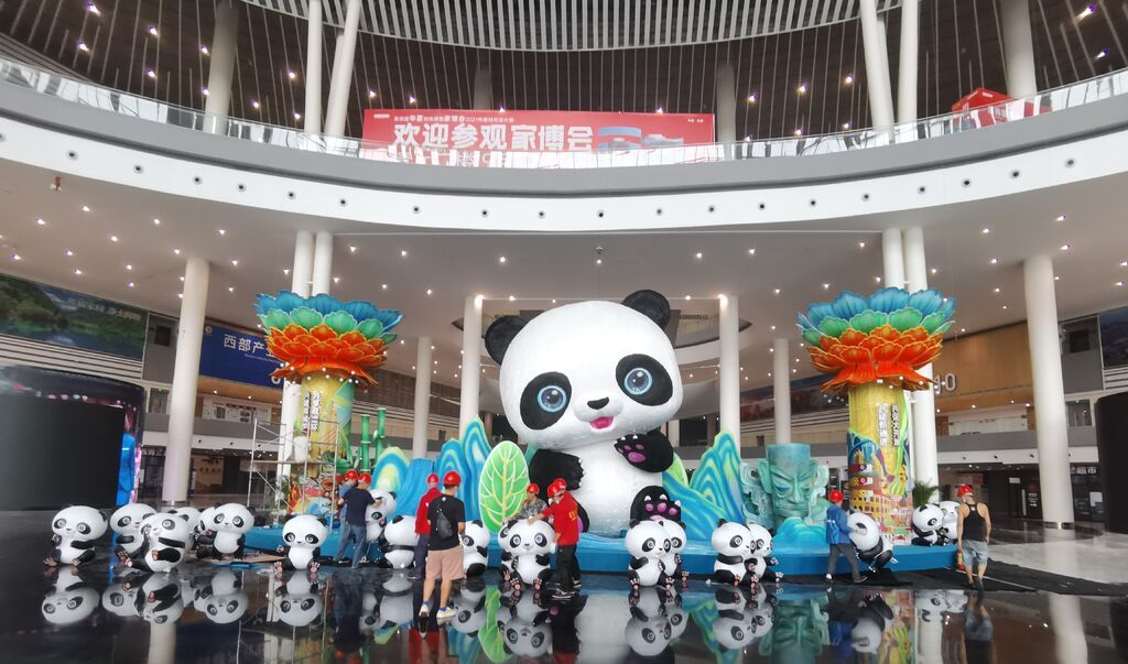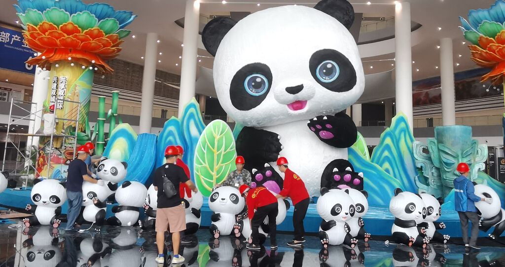 9月13日,一只來自中國燈城自貢的超大熊貓“走進(jìn)”中國西部博覽城9號館,這正是大型主題燈組《四川歡迎您》的“主角”。自貢的彩燈工匠們正在進(jìn)行安裝調(diào)試,為確保它在9月15晚順利亮燈。