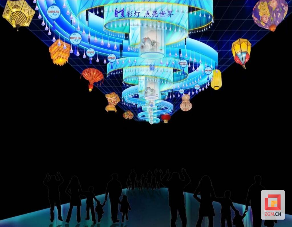 走進(jìn)位于西博城4號館自貢館的展廳內(nèi),這里有《一帶一路》和《生命之樹》一上一下兩組燈組,交相輝映,讓觀眾感受中國燈城的獨(dú)特魅力。