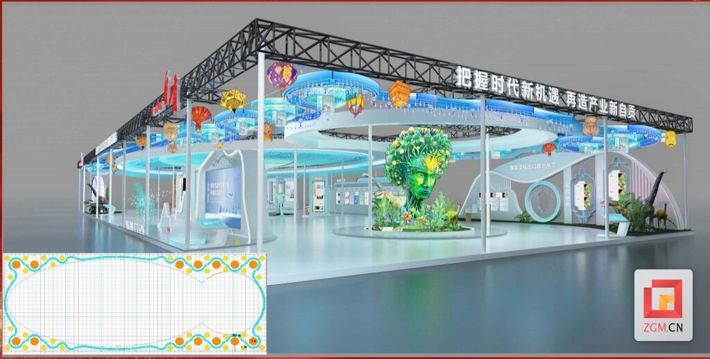 位于頭頂上方的《一帶一路》燈組主體以抽象雙層螺旋絲帶,圍繞宮燈進(jìn)行造型設(shè)計(jì)。100只各式燈籠五彩繽紛,10組螺旋燈飄逸唯美,藝術(shù)地表現(xiàn)了西博會各參展國的歷史風(fēng)情、地域文化,體現(xiàn)了西博會的國際影響力。