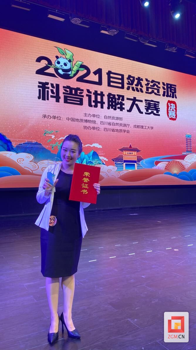 本次大賽由自然資源部主辦,中國地質(zhì)博物館、四川省自然資源廳、成都理工大學承辦,四川省地質(zhì)學會協(xié)辦。經(jīng)過前期初賽、半決賽的層層選拔,陳慧然和其他兩名優(yōu)勝者代表四川,與全國各省市選拔推薦的其余32名選手一道進入決賽。比賽分為自我介紹、自主命題講解和隨機命題講解三個環(huán)節(jié)。最終評出一等獎3名、二等獎7名、三等獎25名。