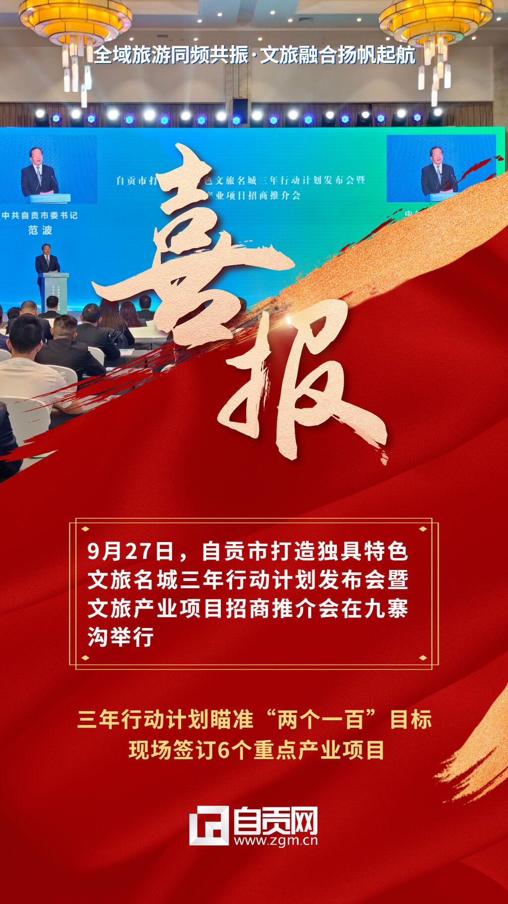 全域旅游同頻共振,文旅融合揚(yáng)帆起航。9月27日,在2021年四川省文化和旅游發(fā)展大會(huì)開(kāi)幕之際,自貢市在阿壩藏族羌族自治州九寨溝縣舉行文旅產(chǎn)業(yè)項(xiàng)目招商推介會(huì),現(xiàn)場(chǎng)發(fā)布自貢市打造獨(dú)具特色文旅名城三年行動(dòng)計(jì)劃,厚植自貢文旅融合發(fā)展新優(yōu)勢(shì),加快走出轉(zhuǎn)型升級(jí)新路,共同譜寫(xiě)巴山蜀水文旅融合發(fā)展的新篇章。