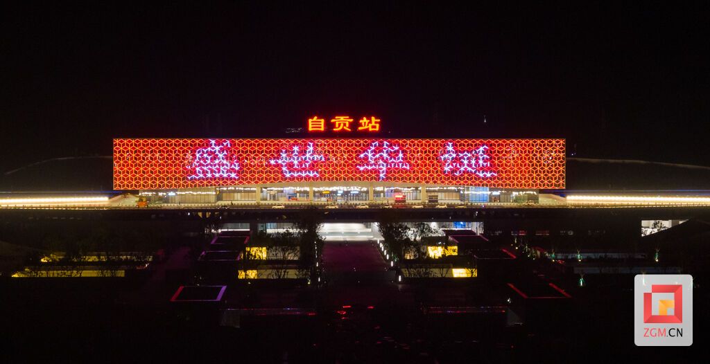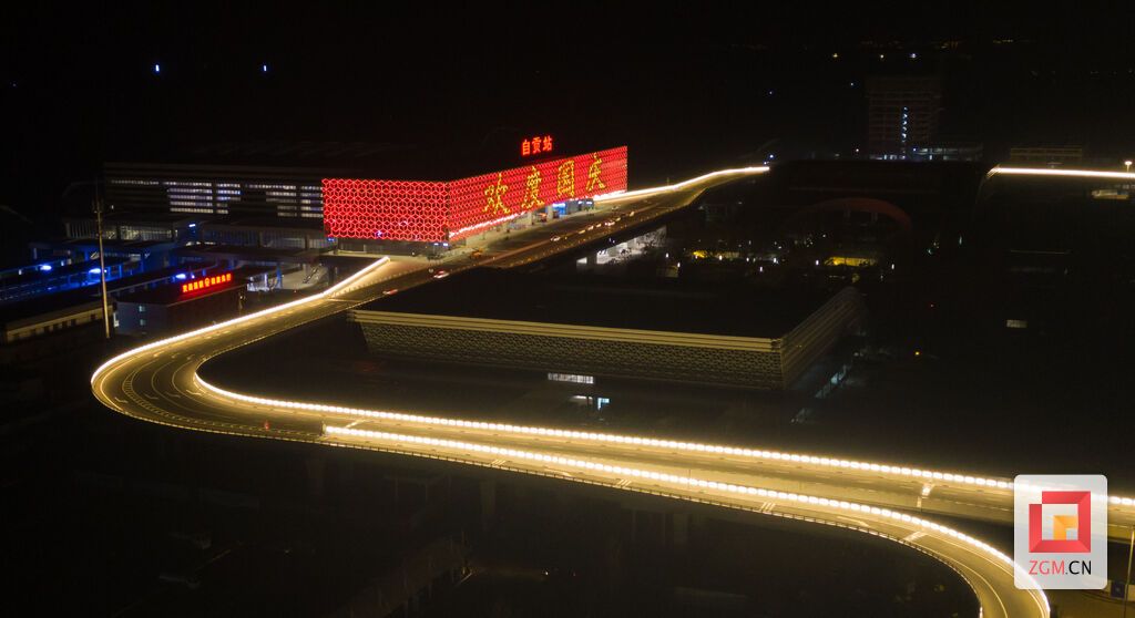 9月29日,記者來(lái)到高鐵自貢站,站房外立面燈光已經(jīng)調(diào)試完畢。隨著夜幕降臨,2077塊呈六邊形的鹽晶體外幕墻鏡面上,光影開始產(chǎn)生變化,五星紅旗的圖案越發(fā)明顯。