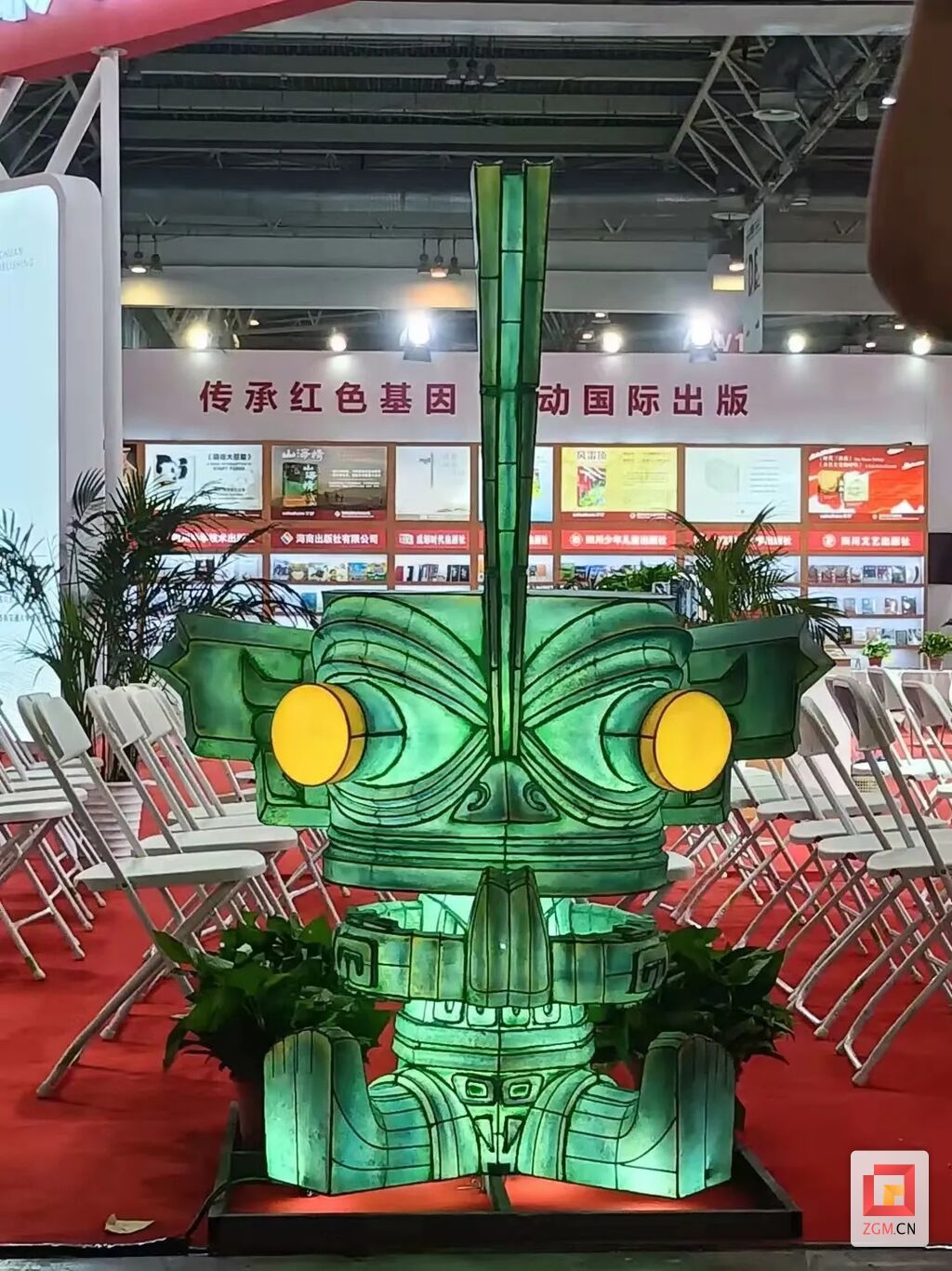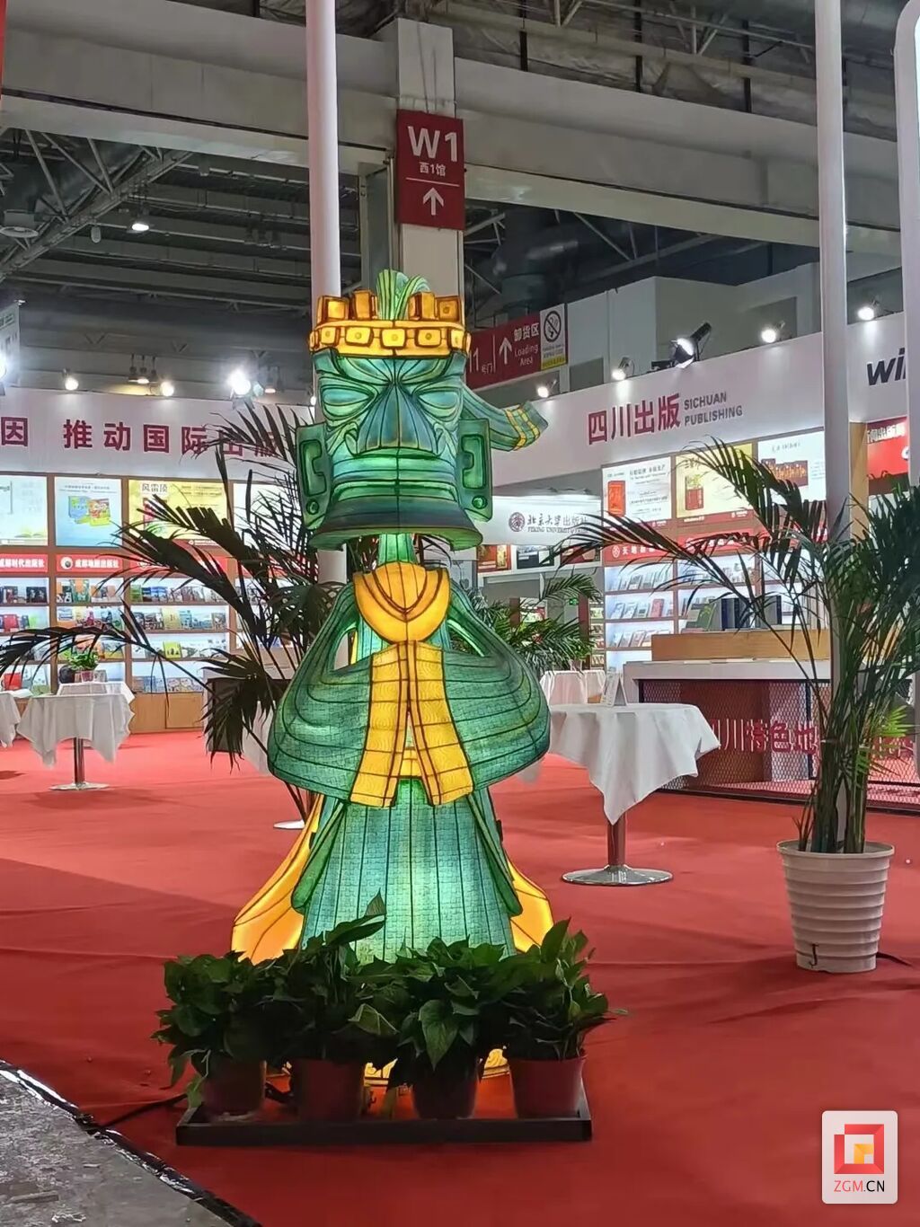 在本屆圖博會(huì)中,設(shè)置有“四川出版”展團(tuán)。受四川出版委托,自貢燈貿(mào)集團(tuán)股份有限公司設(shè)計(jì)制作了兩組以三星堆為主題的彩燈,并以打造自貢精品彩燈的新工藝標(biāo)準(zhǔn)來(lái)制作而成,燈組分別高1.6米和1.8米,為參會(huì)者帶來(lái)別樣的巴蜀風(fēng)情。