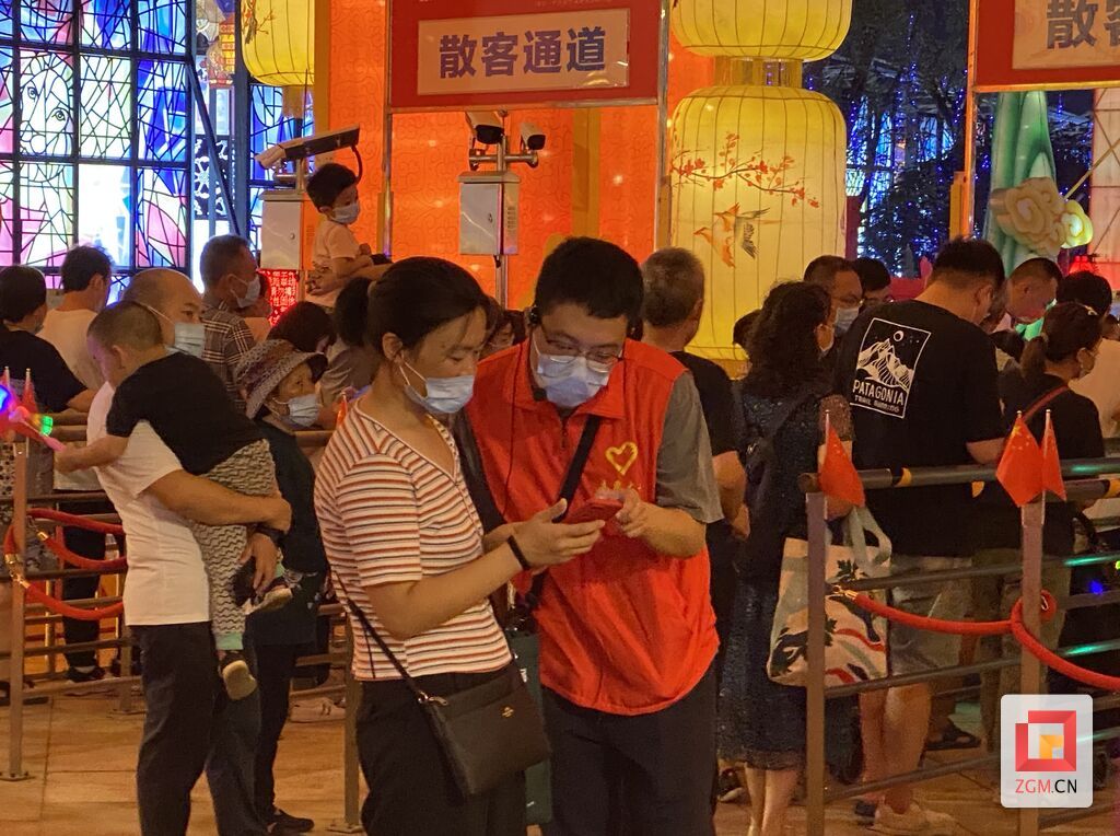 為保障廣大游客安全觀燈,燈會(huì)持續(xù)落實(shí)疫情防控要求,游客須通過(guò)“行程軌跡掃碼查詢(xún)—驗(yàn)碼—測(cè)溫—安檢—驗(yàn)票”五道防線才能入園觀燈。記者從團(tuán)市委了解到,圍繞省、市關(guān)于疫情防控工作的指示要求,我市成立了由市級(jí)機(jī)關(guān)、事業(yè)單位、國(guó)有企業(yè)等330名青年黨員骨干組成的自貢青年黨員突擊隊(duì),國(guó)慶期間每天都排好了30名突擊隊(duì)員作為固定志愿者參與燈會(huì)服務(wù)中,經(jīng)過(guò)專(zhuān)門(mén)培訓(xùn)的他們,既要嚴(yán)格執(zhí)行多項(xiàng)檢查措施確保防疫到位,又要讓游客快速、便捷、有序入園觀燈。