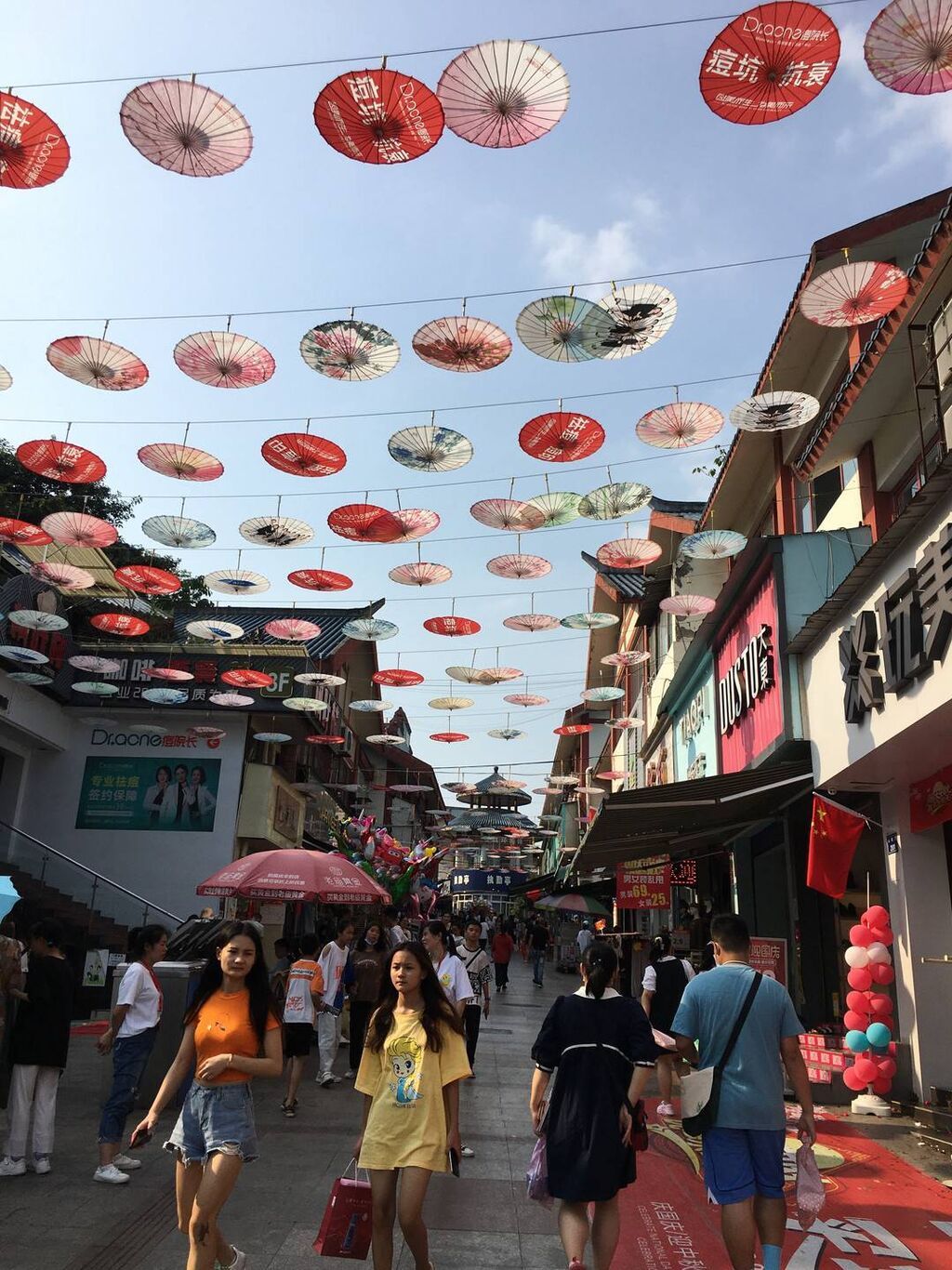 近2000把油脂傘裝扮步行街吸引游客打卡
