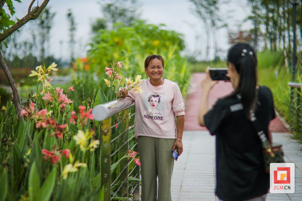 夕陽西下,氣溫漸涼,吃過晚飯的村民陸續(xù)來到顏值在線的“濱河公園”,或納涼消暑,或駐足賞景,或閑聊家常。詹市村十三組村民曾剛琴同家人一起漫步觀景步道,偶遇一處美景,連忙拍照留念。只見她輕撫花朵,笑靨如花,隨著快門聲響,美好時光定格在手機中?!白怨珗@建成后,這里就成了大家休閑的好去處。”曾剛琴高興地說,原來不知道這里是污水處理廠,知道后很驚訝,“沒有噪音,也沒有臭味,誰能想到污水處理廠還能修成這樣?!?/p>