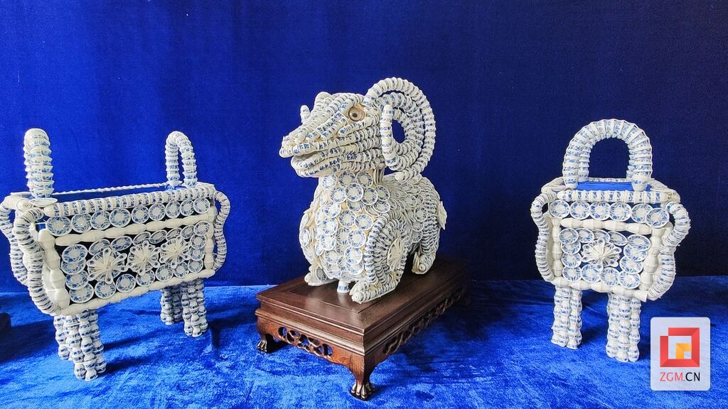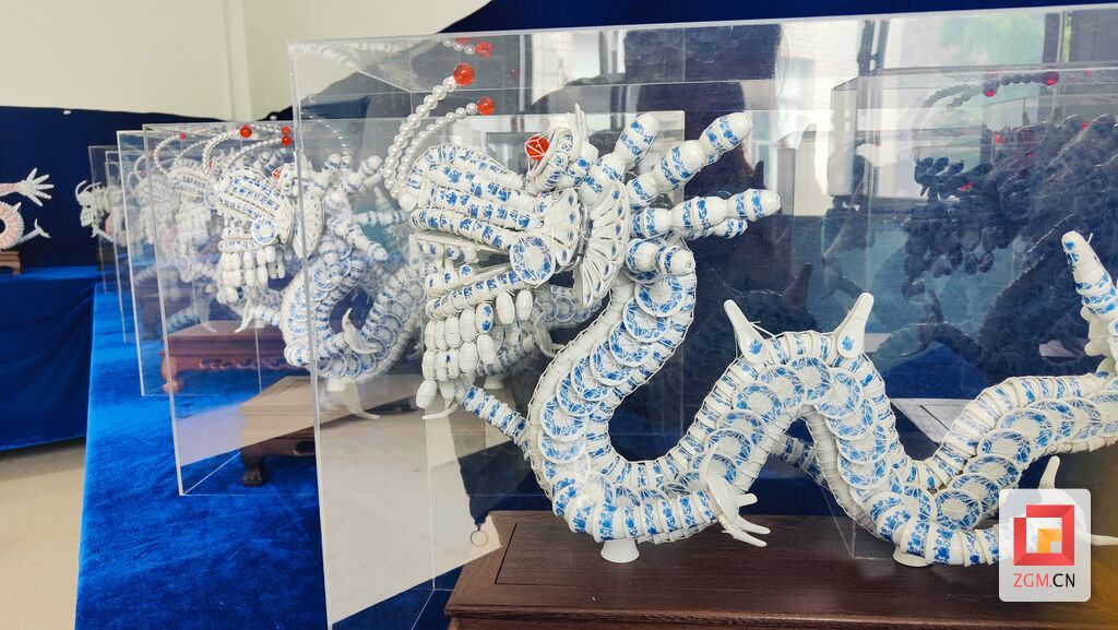 1986年,瓷器燈由小型燈組向大型燈組發(fā)展,用10000多件瓷器捆扎成兩條長4米的《二龍戲珠》。1987年瓷器燈組是《龍鳳成祥》。2009年瓷器燈組是《九龍鼎》。2019年更是有“瓷器燈之最”的《華夏樂章》。