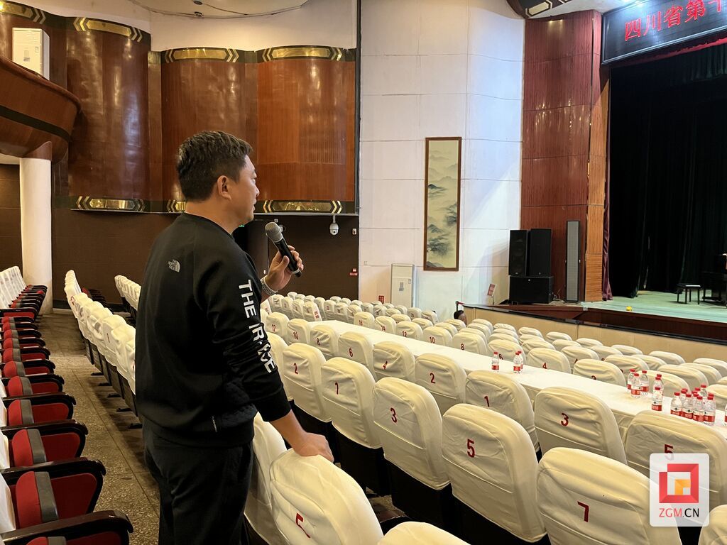 當(dāng)天下午,離比賽首場開幕還有半小時,觀眾陸續(xù)進(jìn)入市川劇藝術(shù)中心大堂里,比賽的氛圍也越來越濃?!芭_上標(biāo)記點(diǎn)多,千萬別記錯?!遍_場第一幕是音樂劇,負(fù)責(zé)道具管理和制作的劉澤科一遍遍提醒著即將上臺的舞蹈演員,還一個個查看演員身上的服裝,幫他們捋平褶皺。