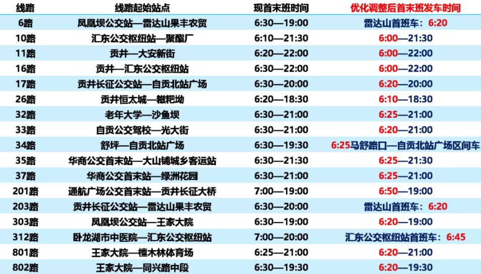 調(diào)整部分公交線路首班車(chē)發(fā)班時(shí)間