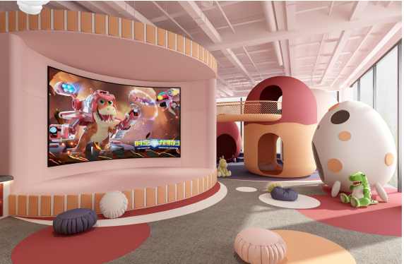 作為以恐龍為主題的親子酒店,其設(shè)計(jì)方向主要以弧形洞穴為主,在客房、餐廳、兒童娛樂、配套休閑等區(qū)域,充分運(yùn)用恐龍IP元素,讓整個(gè)酒店充滿時(shí)尚和童趣。