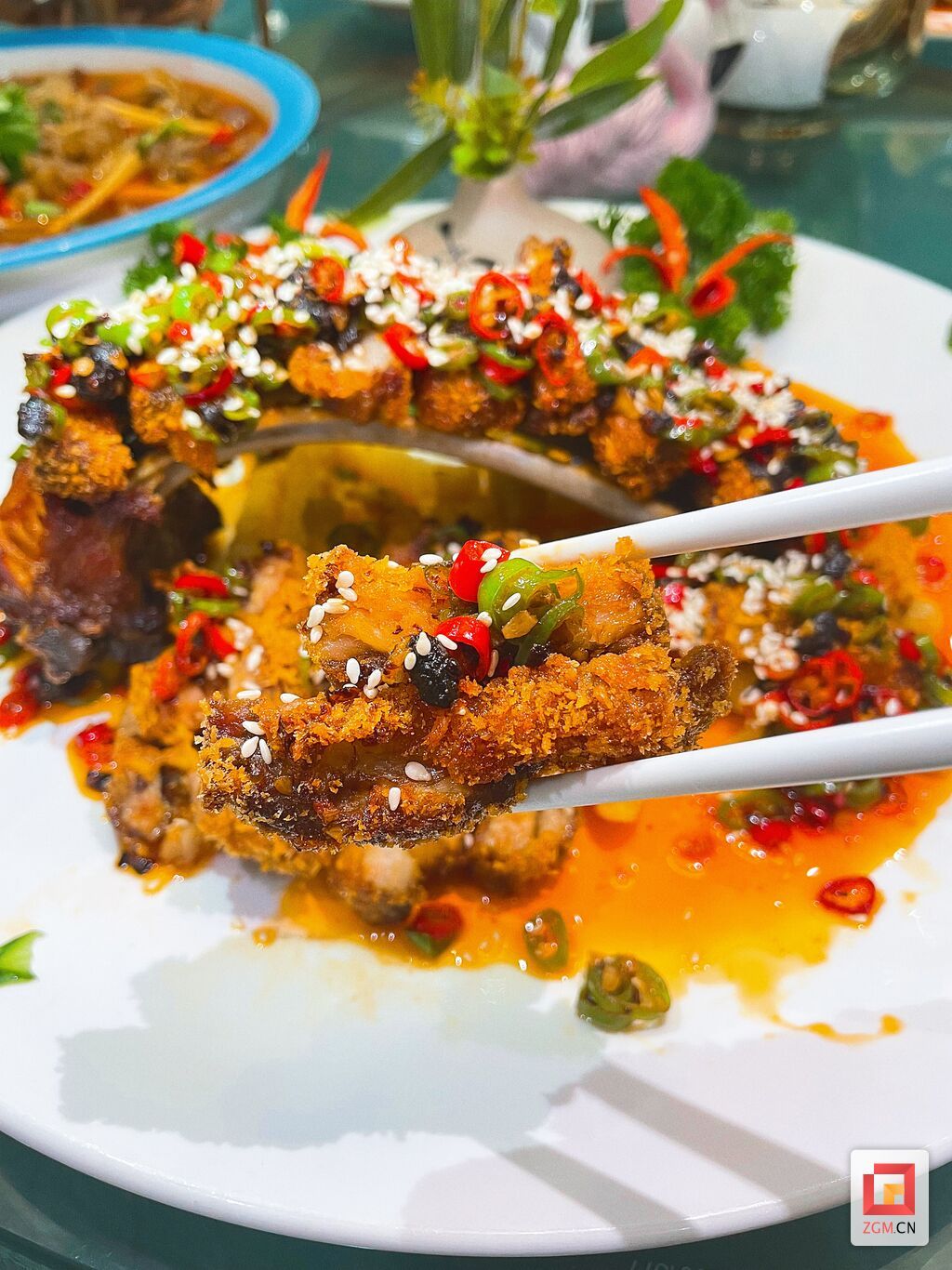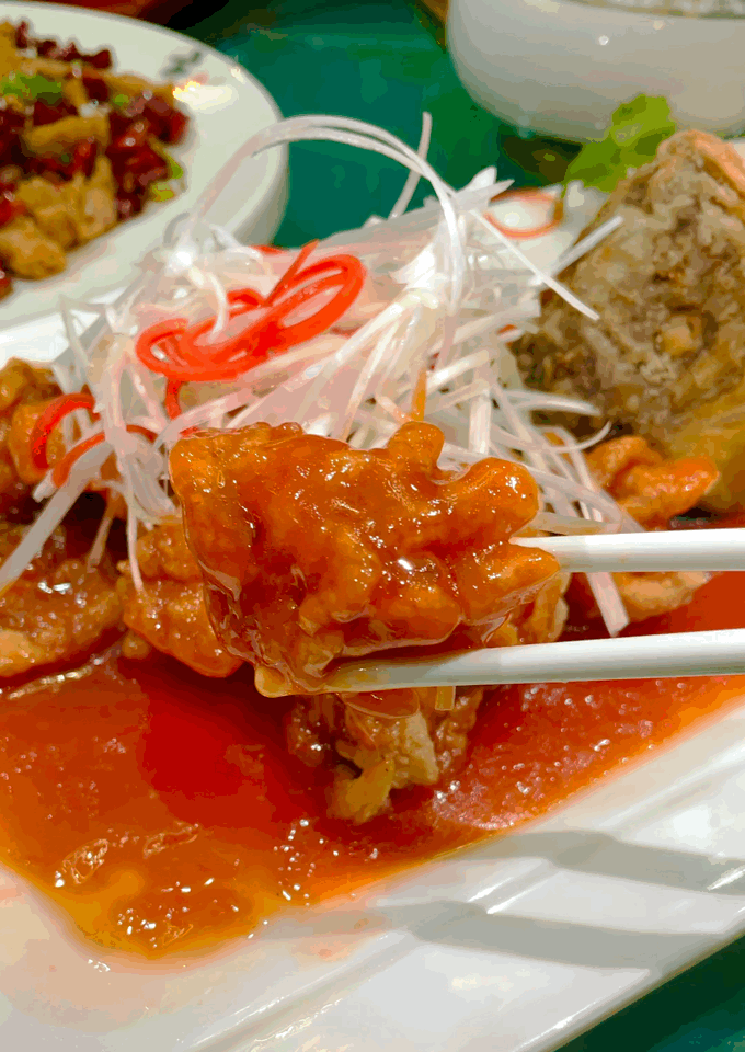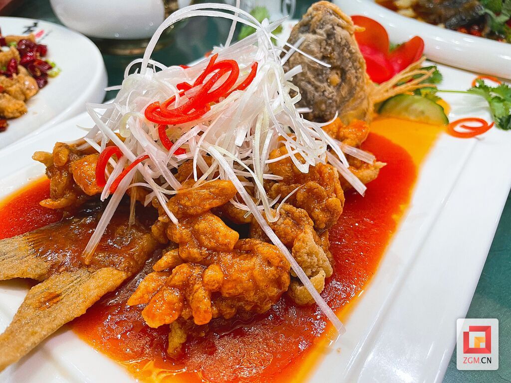 和常見(jiàn)的松鼠桂魚不同,這家店用的是鯉魚,魚肉去骨后切了花刀,炸至酥脆,淋上厚厚一層番茄醬,吃起來(lái)外脆里嫩、酸甜可口,松脆酥香的外皮被稠度剛好的醬汁包裹,入口酸甜之后有淡淡的咸香味,而且內(nèi)里的魚肉非常細(xì)嫩,一口接一口停不下來(lái)。