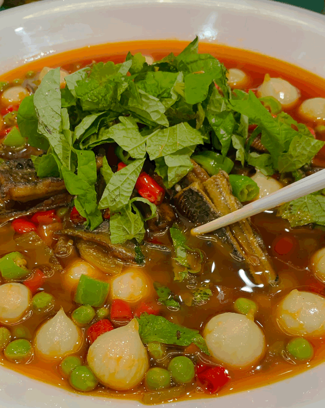 每一塊鱔魚肉都很大塊,肉質(zhì)飽滿,配上它的“cp”茴香,味道簡(jiǎn)直不擺了,好吃到想讓老板把湯湯兒打包回家明早下面吃。