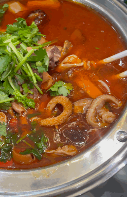 滿滿的一大鍋,里面有肉又有雜,分量相當(dāng)扎實(shí)。