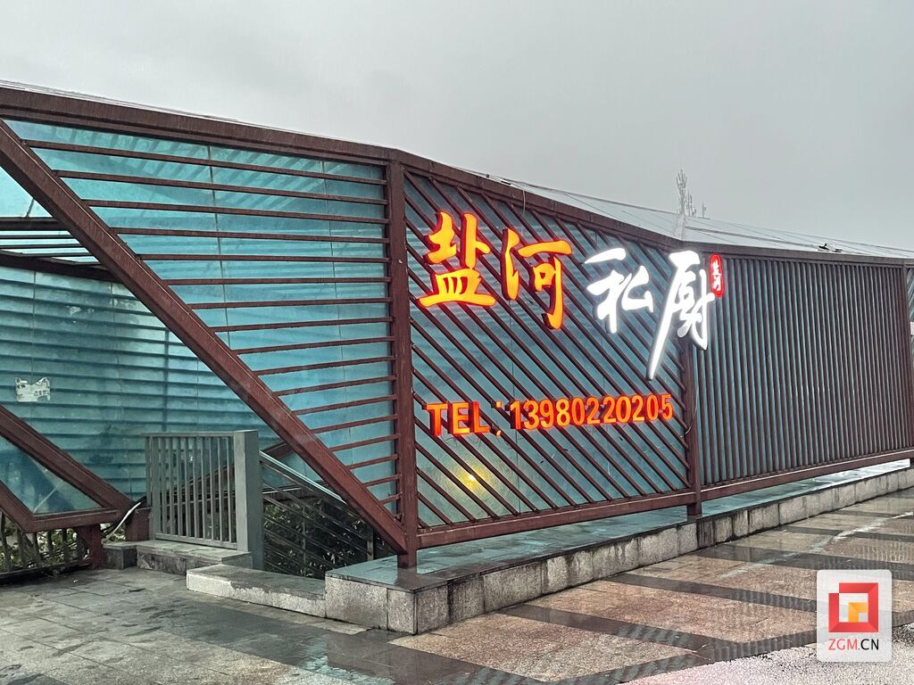鹽河私廚位于自貢的母親河釜溪河十字口河畔。店子的前身是2014年開始的新美私房菜和2018年的怡景灣私房菜。