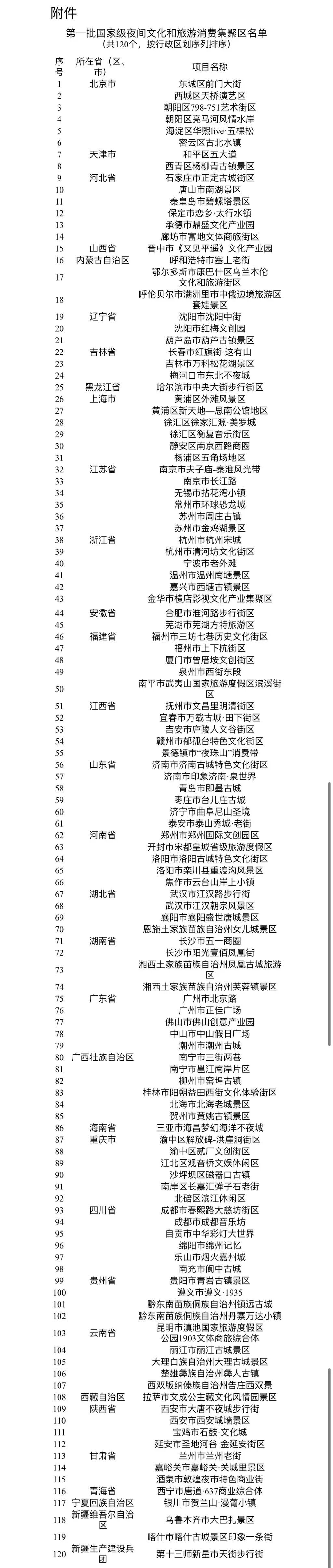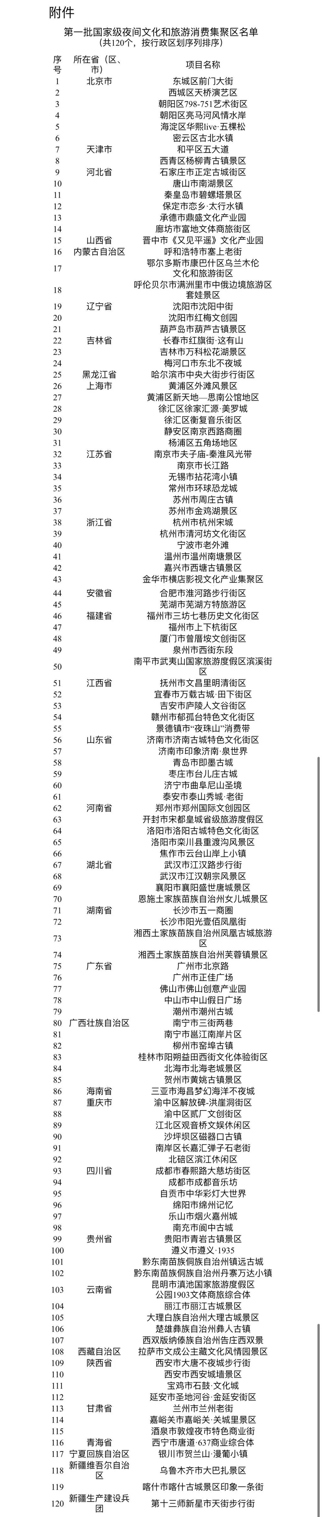 據了解,為貫徹落實《國務院辦公廳關于進一步激發(fā)文化和旅游消費潛力的意見》,根據《文化和旅游部辦公廳關于開展第一批國家級夜間文化和旅游消費集聚區(qū)建設工作的通知》要求,在各?。▍^(qū)、市)和新疆生產建設兵團積極申報的基礎上,經綜合研究,確定了第一批國家級夜間文化和旅游消費集聚區(qū)名單。共有120個集聚區(qū)入圍,其中,來自四川的有成都市春熙路大慈坊街區(qū)、成都市成都音樂坊、自貢·中華彩燈大世界、綿陽市綿州記憶、樂山市煙火嘉州城、南充市閬中古城。