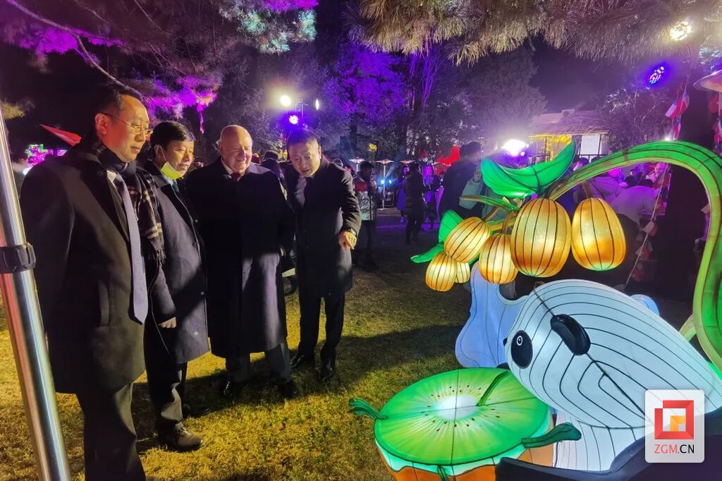 11月26日晚,在作為“智利周”系列活動(dòng)之一的“智利駐華大使館抖音智利奇妙夜”上,自貢燈彩集團(tuán)精心制作了智利車?yán)遄?、羊駝、帝企鵝、復(fù)活島石像等富有智利文化元素的10余組彩燈?!案兄x參與方——自貢燈彩集團(tuán),用精美的彩燈裝點(diǎn)了我們的現(xiàn)場(chǎng),讓這個(gè)夜晚獨(dú)具一格。 ”智利駐華大使路易斯·施密特在亮燈儀式上表示。