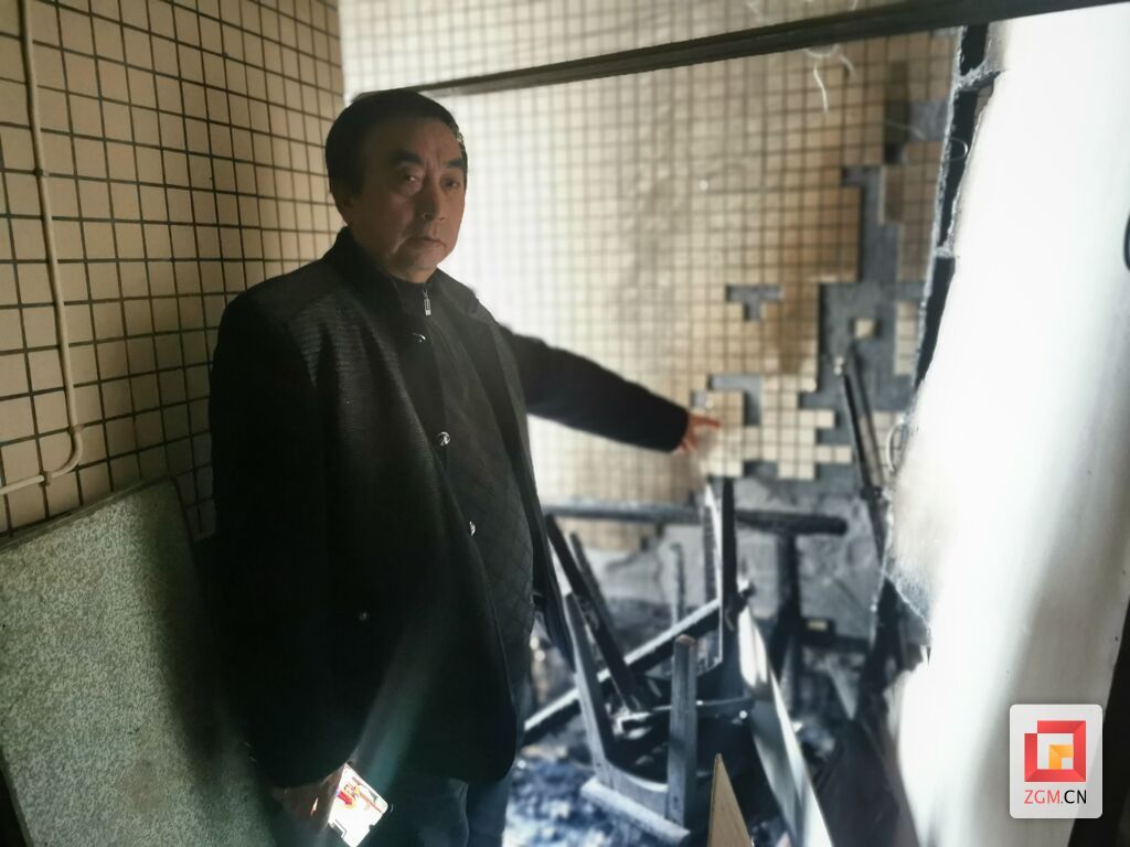當(dāng)天中午12時許,順龍家苑二棟16樓的蔣選琴正在家中吃午飯。此時,窗外飄來一股焦糊味,正覺納悶的她向窗外天井望去,發(fā)現(xiàn)玻璃上隱約有火光閃動,“遭了,可能起火了?!笔Y選琴趕緊讓丈夫曾紹高察看情況。當(dāng)曾紹高打開窗戶時,一股濃煙直沖鼻腔,讓他一陣咳嗽,“是起火了,趕緊走?!痹B高讓妻子趕緊撥打火警電話,并向社區(qū)匯報,自己則跑出家門大聲呼喊,“所有鄰居快出來,起火了?!贝藭r,15樓居民曾益能也發(fā)現(xiàn)了異常,聽到曾紹高的呼喊后,連忙回應(yīng):“老曾,是13樓起火了?!庇谑?,幾人趕緊前往14樓,敲開一居民家后,用“鍋碗瓢盆”隔著天井向起火點潑水。數(shù)分鐘后,10余名被驚動的居民也參與到滅火中。然而,由于火勢逐漸兇猛,“鍋碗瓢盆”滅火已是杯水車薪。見此情景,曾紹高急忙打開消防箱,拉出水帶向火點噴水。正在此時,三名物業(yè)保安接到社區(qū)通知后也趕到現(xiàn)場,使用干粉滅火器進(jìn)行滅火,在大家齊心協(xié)力下,火情迅速得到控制。