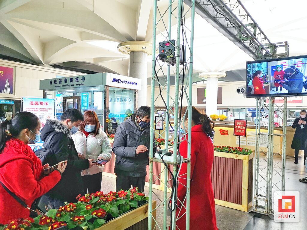 “請(qǐng)戴好口罩、提前出示健康碼,方便工作人員查驗(yàn)?!碑?dāng)日上午10時(shí),在市汽車客運(yùn)總站入口,安保人員有序組織乘客掃碼進(jìn)站,測(cè)量入站乘客的體溫,并查驗(yàn)乘客是否規(guī)范佩戴口罩。車站循環(huán)播放著防疫提示,工作人員還對(duì)不會(huì)使用或者沒有智能手機(jī)的老人、兒童、殘障人士等特殊旅客提供了代查健康碼、協(xié)助信息填報(bào)等服務(wù)。