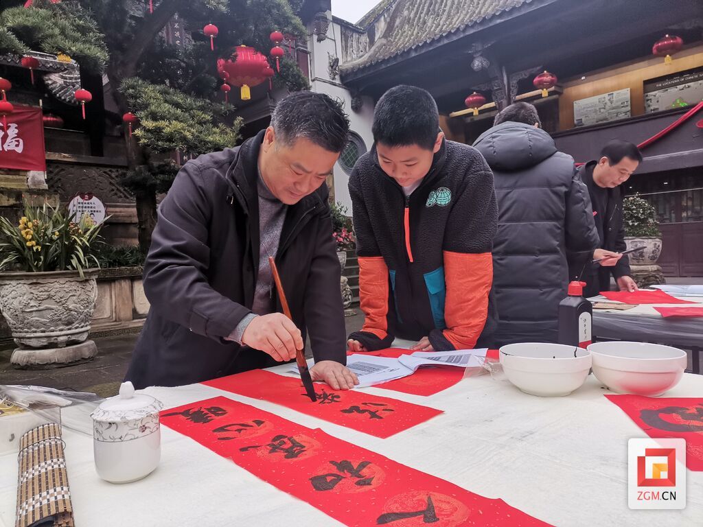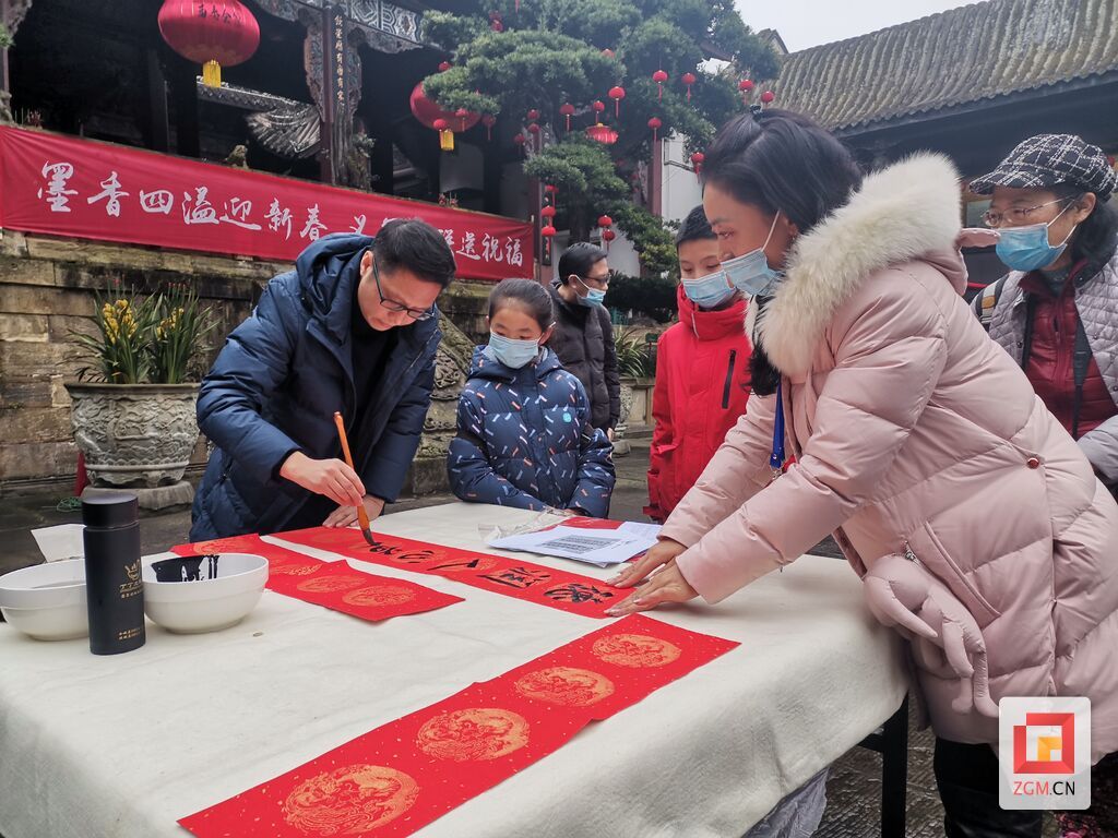 1月25日,自貢市鹽業(yè)歷史博物館攜手民革自貢市委邀請我市知名書法家開展“墨香四溢迎新春 義寫春聯(lián)送祝?!蔽幕菝窕顒印覀?yōu)橛慰?、市民“提筆納?!?,一副副春聯(lián)充滿喜慶、吉祥,寄托著人們對新年的憧憬和向往,整個古建筑群張燈結(jié)彩,洋溢著濃濃的“年味”。