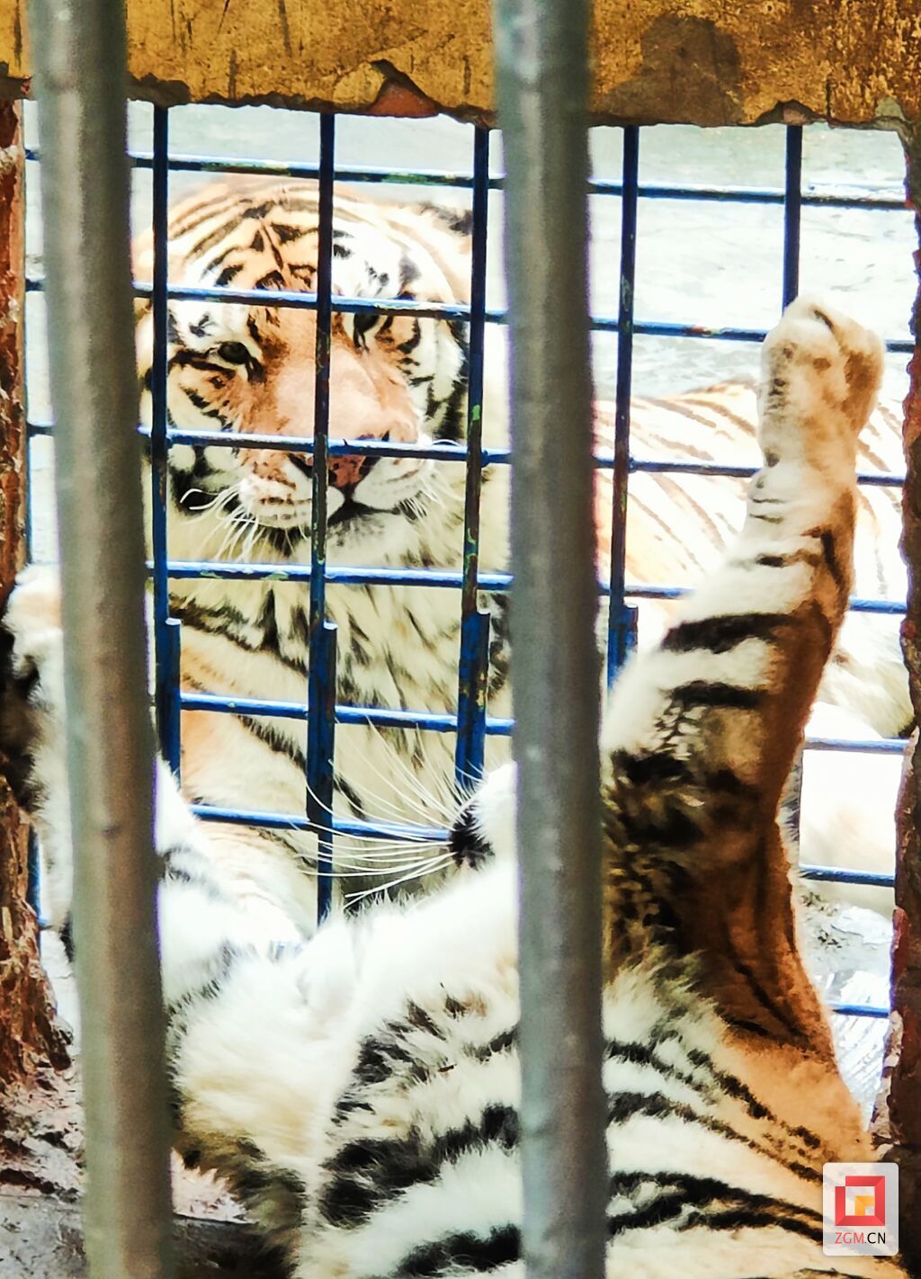 在繆體友喚著“虎妞”時,它還會歪著腦袋蹭著防護欄桿,時不時發(fā)出嗲嗲撒嬌式的虎叫,仿佛一個孩子在博求大人的關注。
