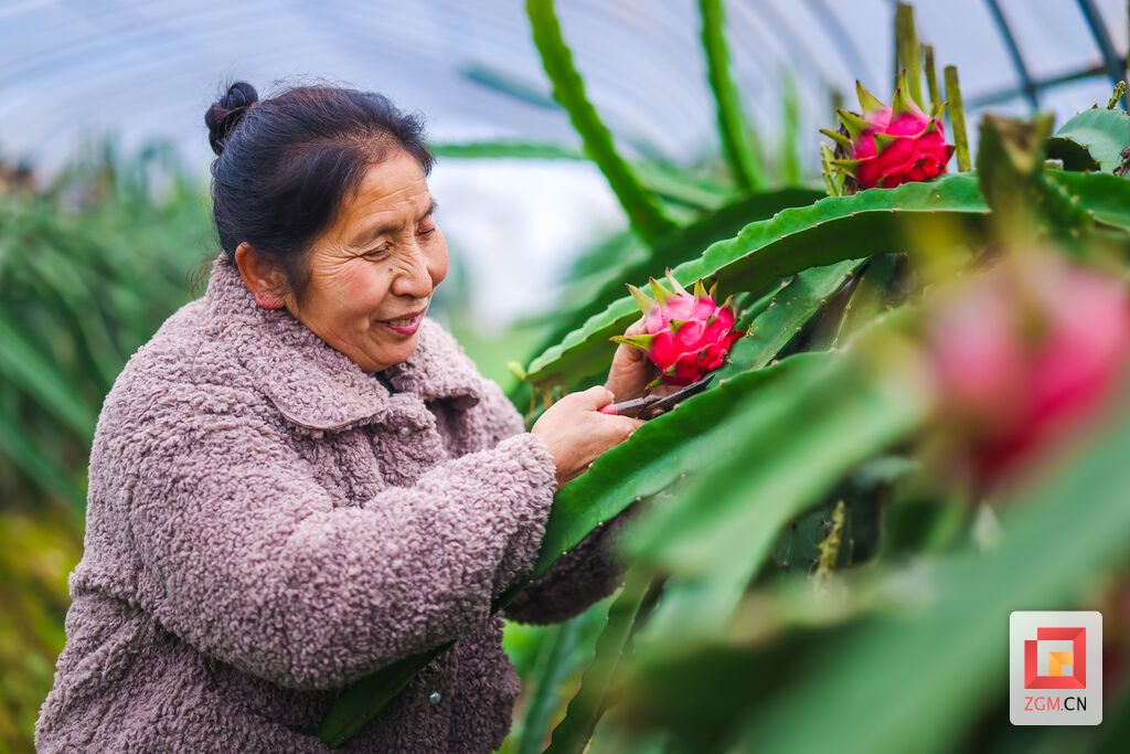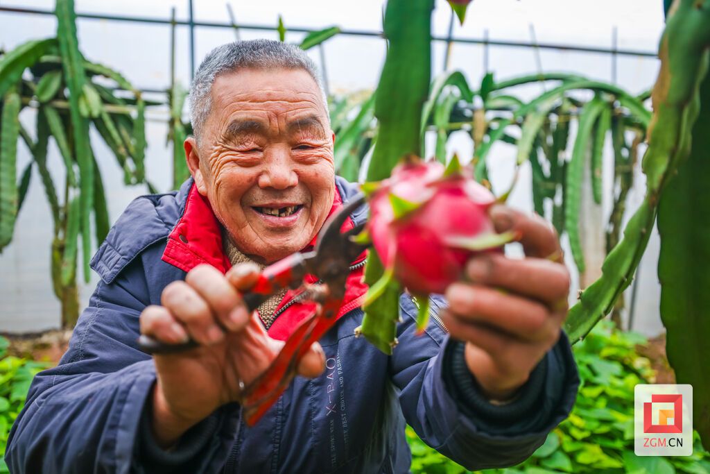 祝國(guó)民的果園有近50畝,里面種有火龍果、黃桃、柑橘、枇杷等水果,去年,僅火龍果就有50多萬(wàn)斤的產(chǎn)量。