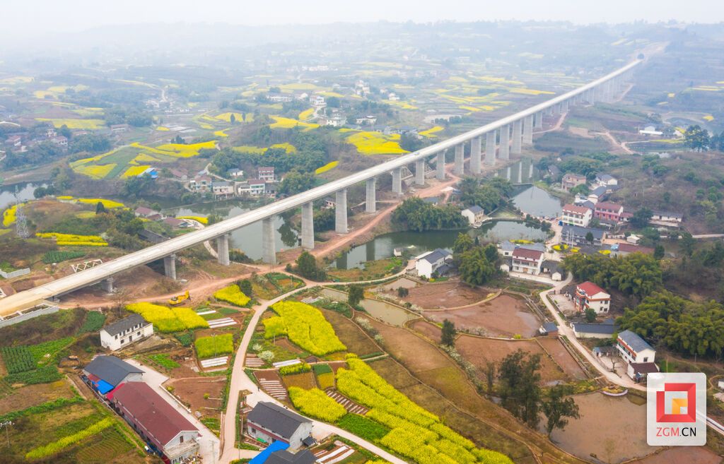 3月9日,初春時節(jié)持續(xù)回暖,氣溫節(jié)節(jié)攀升,跨越大安區(qū)三多寨鎮(zhèn)聯(lián)合村、轎子村、同春村、三關(guān)村和楊柳村的成自高鐵建設(shè)現(xiàn)場,一片火熱。建設(shè)者們正搶抓施工有利時機,趕工期、追進度,確保重大項目按時間節(jié)點如期推進。