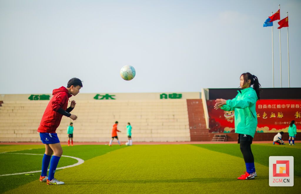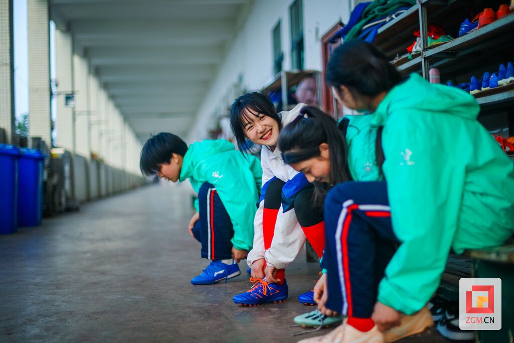 顛球、跑步,帶球繞桿、傳球過人……身后的綠茵場上,熱鬧非凡、身影穿梭,一群女足隊員已經(jīng)分組對抗了好幾個回合,臉頰漲紅,汗?jié)耦~頭…………日復(fù)一日,小學(xué)、初中、高中三個年齡段的女足隊員們在課后分隊、分時段展開常訓(xùn)。