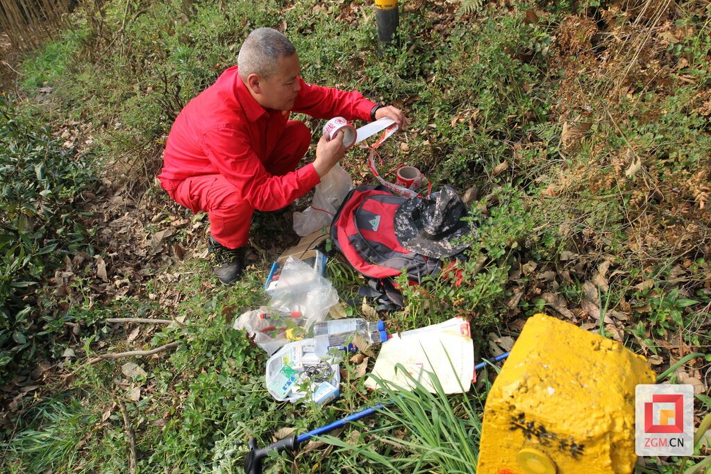 夕陽西下,當(dāng)最后一根樁測試完畢,屈剛用手杖敲打著四周,從比人高的草叢中躥出來,放下背包休整。