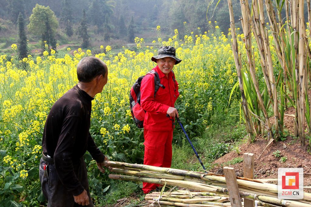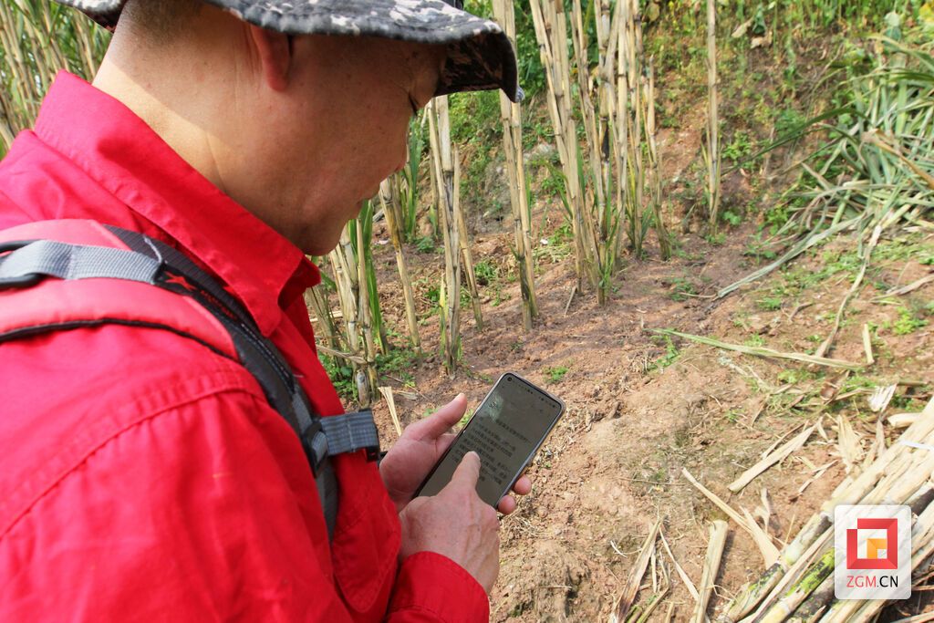 穿過村道、鉆進(jìn)竹林、翻越路障、來到田地,他又一次在沿灘區(qū)永安鎮(zhèn)瓦市村偶遇了種甘蔗的鄉(xiāng)親劉昌云。兩人像哥兒倆一樣攀談,互致問候。