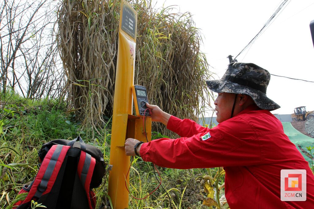 打開測試樁保護(hù)蓋,他拿出檢測器具、儀表,對(duì)準(zhǔn)放在保護(hù)蓋內(nèi)的檢測點(diǎn),只見儀表燈光閃爍,一串?dāng)?shù)字伴著蜂鳴聲顯現(xiàn),該點(diǎn)位巡護(hù)記錄完成。