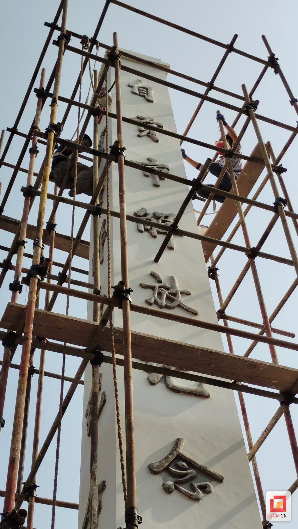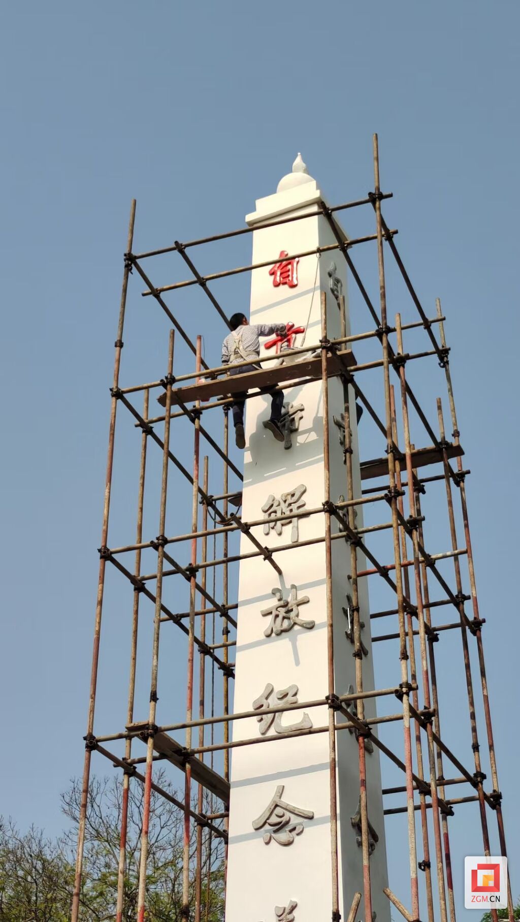 作為紀(jì)念自貢市解放的標(biāo)志性建筑,坐落在彩燈公園的自貢市解放紀(jì)念塔經(jīng)歷了歷史的滄桑變幻。3月18日,記者從道生灝大門進(jìn)入彩燈公園,看見工人在搭好的腳手架上對碑體進(jìn)行描紅。據(jù)悉,本次紀(jì)念塔維護(hù)工作將從3月初持續(xù)至3月底。