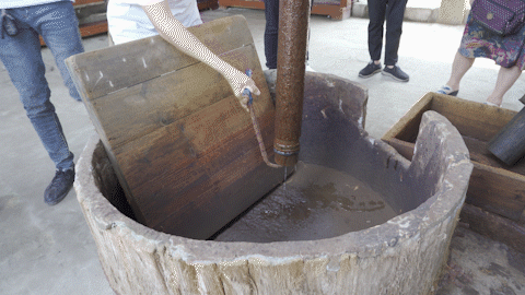 在燊海井,可以讓游客現(xiàn)場(chǎng)體驗(yàn)提撈采鹵、鹵水輸送、制作井鹽、儲(chǔ)鹽運(yùn)鹽的全過程,向廣大游客展示自貢井鹽文化的精髓和奧秘。特別是提撈采鹵環(huán)節(jié),11米長(zhǎng)的汲鹵筒會(huì)下到千米深的井中取回鹵水,隨著汲鹵筒被緩緩提起,冒著熱氣的鹵水被汩汩倒出。這時(shí),往往會(huì)引來游客競(jìng)相拍照。