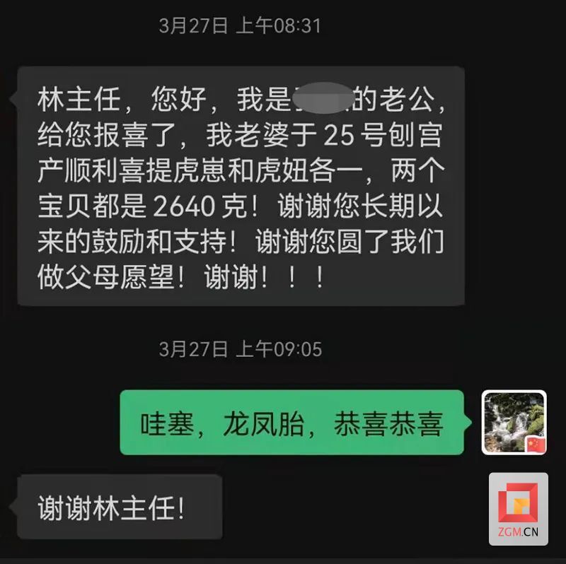 林杰及團隊反復(fù)研究討論,制定方案,為張女士進行了超聲監(jiān)測下減胎手術(shù),保留了相對發(fā)育更佳的兩個胚胎。術(shù)后,張女士到醫(yī)院進行保胎治療,經(jīng)復(fù)查超聲,雙胎寶寶發(fā)育良好,被減滅的胚胎逐漸萎縮吸收。隨后,張女士在醫(yī)院成功誕下一對龍鳳胎,夫妻倆在第一時間將這個好消息告知林杰,感謝團隊圓了他們做父母的愿望。