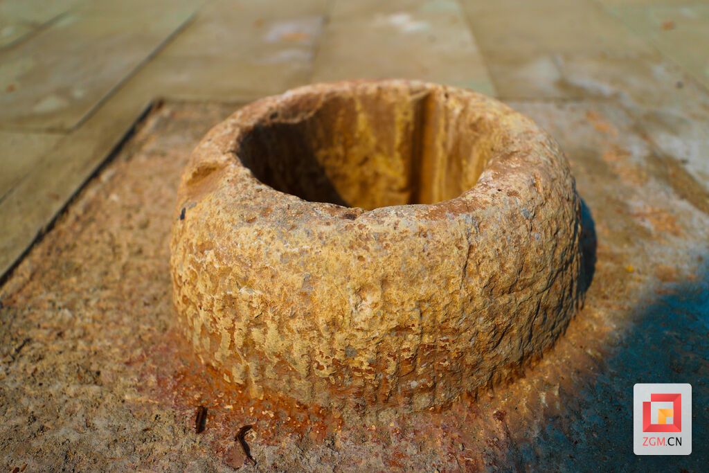 說話間,楊師傅自然而然成為了大家的好向?qū)?。一群人邊聽邊問邊看,發(fā)現(xiàn)離地磙不遠(yuǎn)處,就是大車房遺址。盡管它被改建成民宅多年,但古老的石礎(chǔ)和木柱還是曾經(jīng)的模樣?!熬?、地磙、柜房、車房,一個(gè)完整的汲鹵生產(chǎn)單元原汁原味地被基本保存到現(xiàn)在,太不容易了?!币恍腥瞬唤袊@。