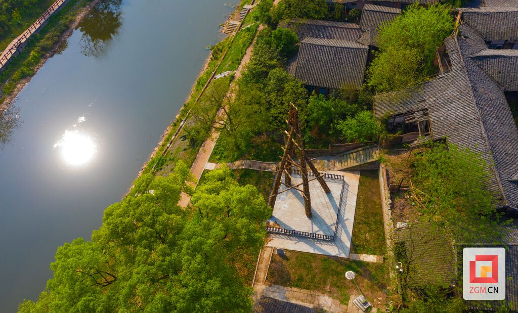 站在艾葉鎮(zhèn)老街新建的觀景臺(tái)下方的“大石包”岸邊,向東遠(yuǎn)眺老鷹嘴(小地名),老照片拍攝方位被還原。而今,照片中靠岸停泊的運(yùn)鹵船只雖早已不復(fù)存在,但天福井一帶依舊保留著過去的歷史風(fēng)貌。素有“自貢鹽運(yùn)第一灘”之稱的艾葉灘,在這里顯露出旭水河“八里畫廊秦淮”的歷史厚重。
