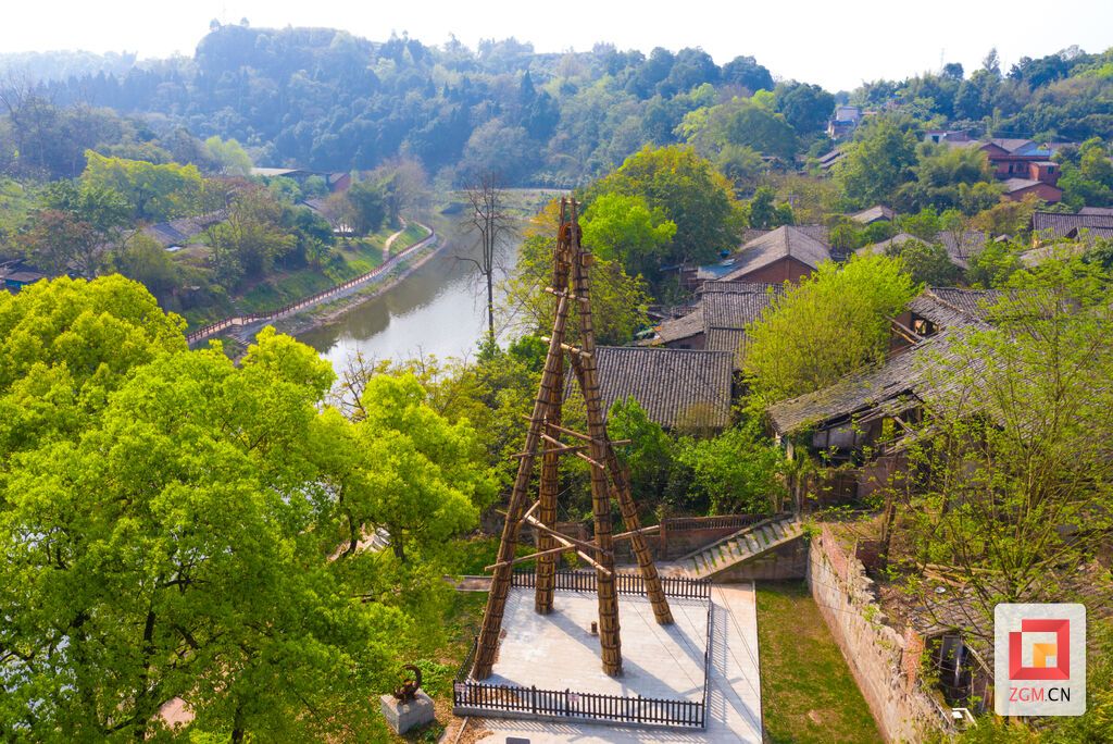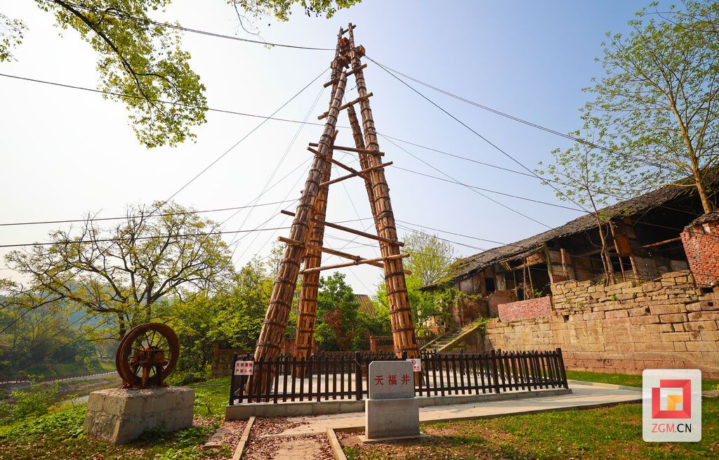 2022年1月,貢井區(qū)艾葉鎮(zhèn)大碼頭社區(qū)4組永勝路73號(hào)天福井原址之上,復(fù)建的一座高18.1米的四腳天車,拔地而起,高聳入云。這是國家級(jí)非物質(zhì)文化遺產(chǎn)“自貢井鹽深鉆汲制技藝” 保護(hù)傳承史上的又一標(biāo)志性事件。