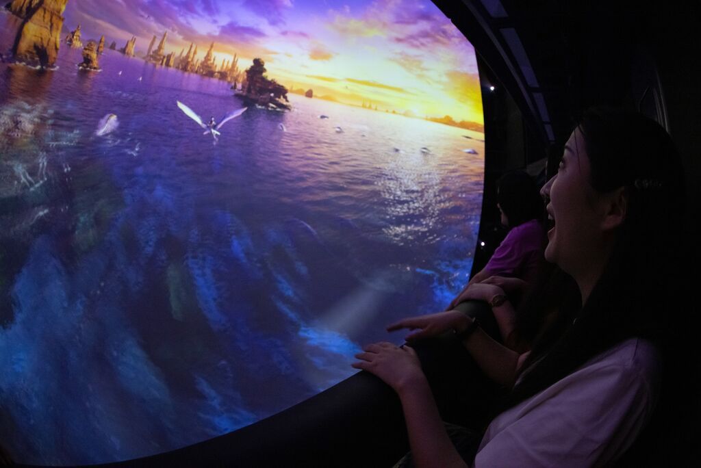 如何在游樂場里“重返原始時代”?自貢方特恐龍王國把氛圍感拿捏得死死的。通過復(fù)刻原始叢林、濕地沼澤、火山峽谷等眾多史前場景,再借力AR、VR、球幕、巨幕等現(xiàn)代科技,這個樂園把恐龍科普研學(xué)與沉浸式冒險融于一體。在旋轉(zhuǎn)環(huán)境4D劇場《重返侏羅紀(jì)》里,“熊出沒”家族開啟穿越之旅;在大型室內(nèi)河道漂流項(xiàng)目《河谷探秘》里,游客能乘坐漂流船緩緩潛入深谷,邂逅史前生態(tài)環(huán)境中的恐龍族群;在大型懸掛式球幕影院《飛翔》里,座椅就像一只“翼龍吊籃”,帶你在史前地球里御風(fēng)而行......