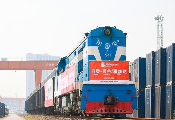 4月8日,一列載有上百噸“自貢造”焊條、焊粉等產(chǎn)品的國際班列,從自貢南站駛出。和前幾次一樣,本次國際班列也裝載著10多個集裝箱的彩燈燈組。