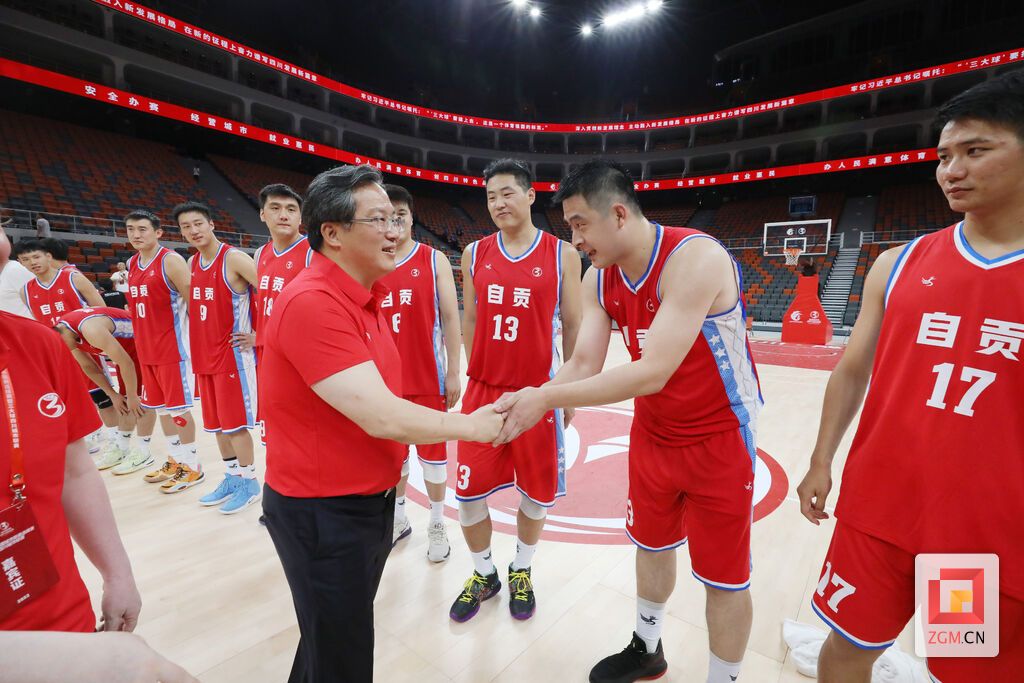 6月22日晚,“體總杯”三大球中國城市聯(lián)賽選拔賽暨三大球四川城市聯(lián)賽在成都市鳳凰山體育公園綜合體育館開幕。開幕式后揭幕戰(zhàn)鳴哨開球,自貢男籃同眉山男籃展開對(duì)決,自貢男籃最終憑借出色發(fā)揮以75:61取得開門紅。市委書記范波觀看揭幕戰(zhàn)并看望慰問自貢男籃教練組和球員。