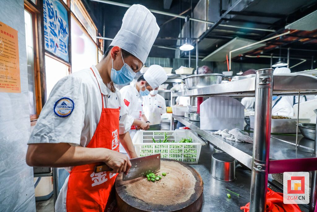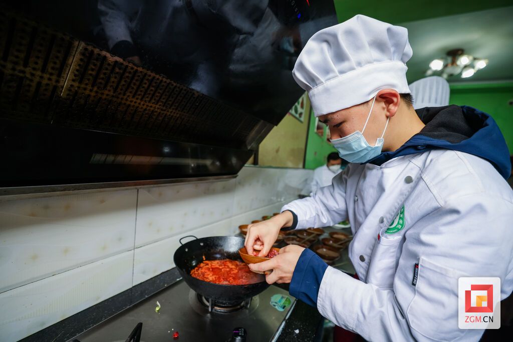 胡健告訴記者,當初學校設(shè)置中餐烹飪與營養(yǎng)膳食專業(yè)時,就看中了餐飲行業(yè)便于就業(yè),他表示餐廳除了“鍋兒匠”,還有配菜、墩子、服務員等崗位,學校并不是要把所有學生都培養(yǎng)成廚師。