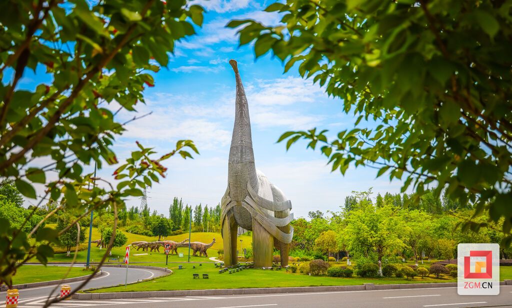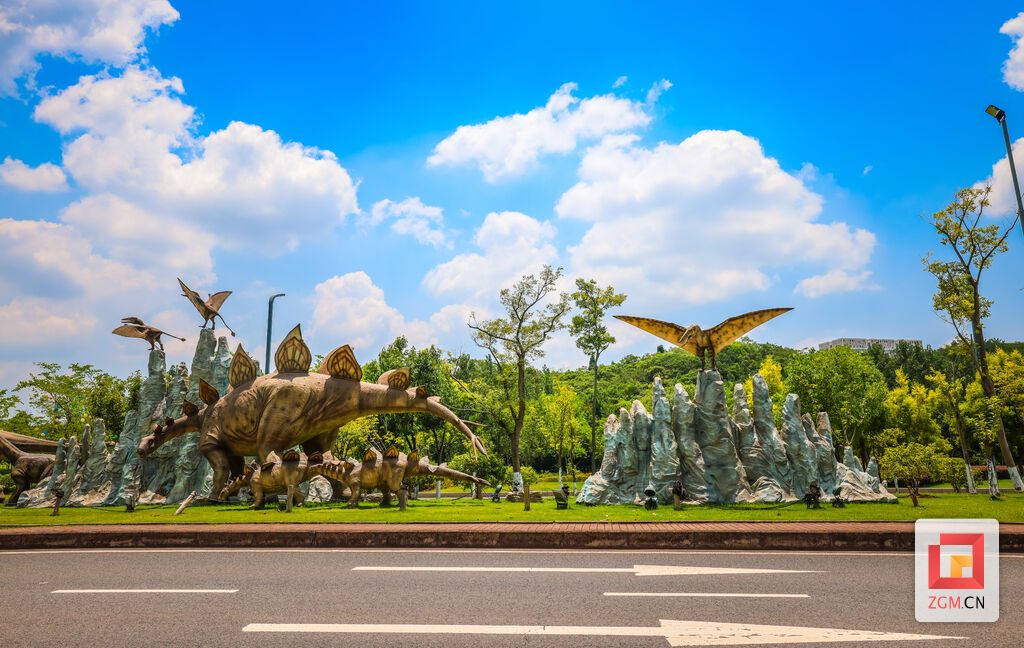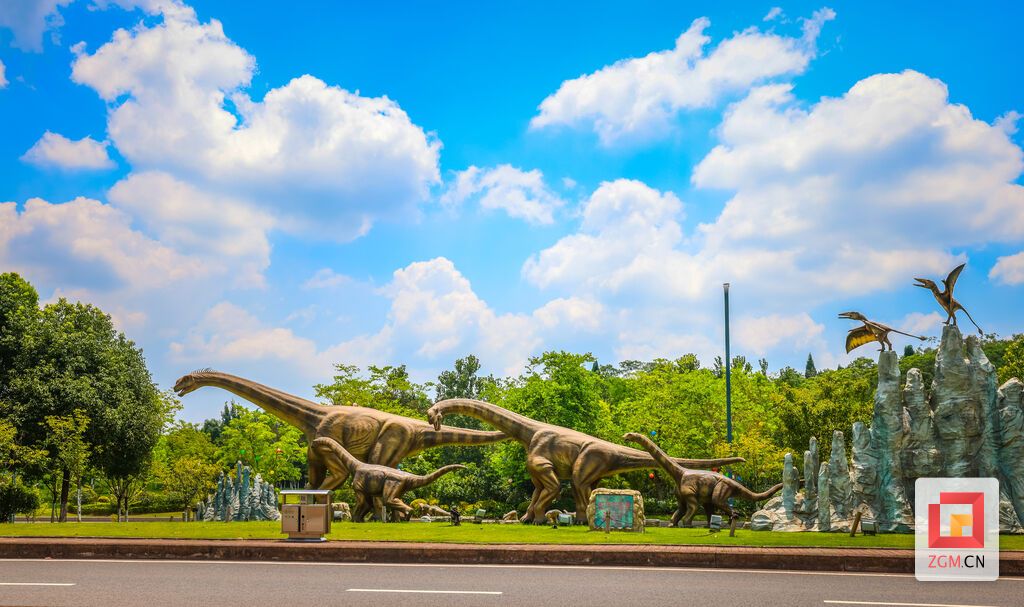 記者注意到,駕車經(jīng)過寬敞整潔的東鹽都大道,自然景觀與恐龍文化環(huán)環(huán)相扣,沿線綠化帶和中間隔離帶都能見到很多栩栩如生的仿真恐龍,他們或三五成群草地嬉戲,或集中合力圍捕覓食,形態(tài)各異,瞬間將人拉回遠(yuǎn)古恐龍時代。