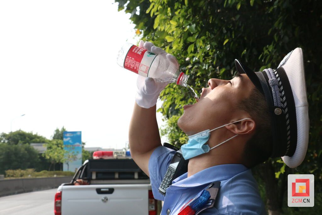 連日的高溫,熱浪襲人,但有一群人正在大街小巷與高溫抗衡,他們用汗水和辛勞守護(hù)道路暢通、市民出行安全,成為一道最美的風(fēng)“警”線。