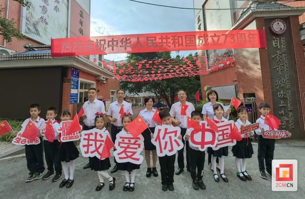 向國旗敬個禮、和國旗同框合個影、獻(xiàn)唱紅色歌曲……連日來,自貢各中小學(xué)校開展了形式多樣的主題教育活動,師生們以不同形式慶祝祖國華誕,厚植愛國主義精神,傳承紅色基因,歌頌偉大祖國。