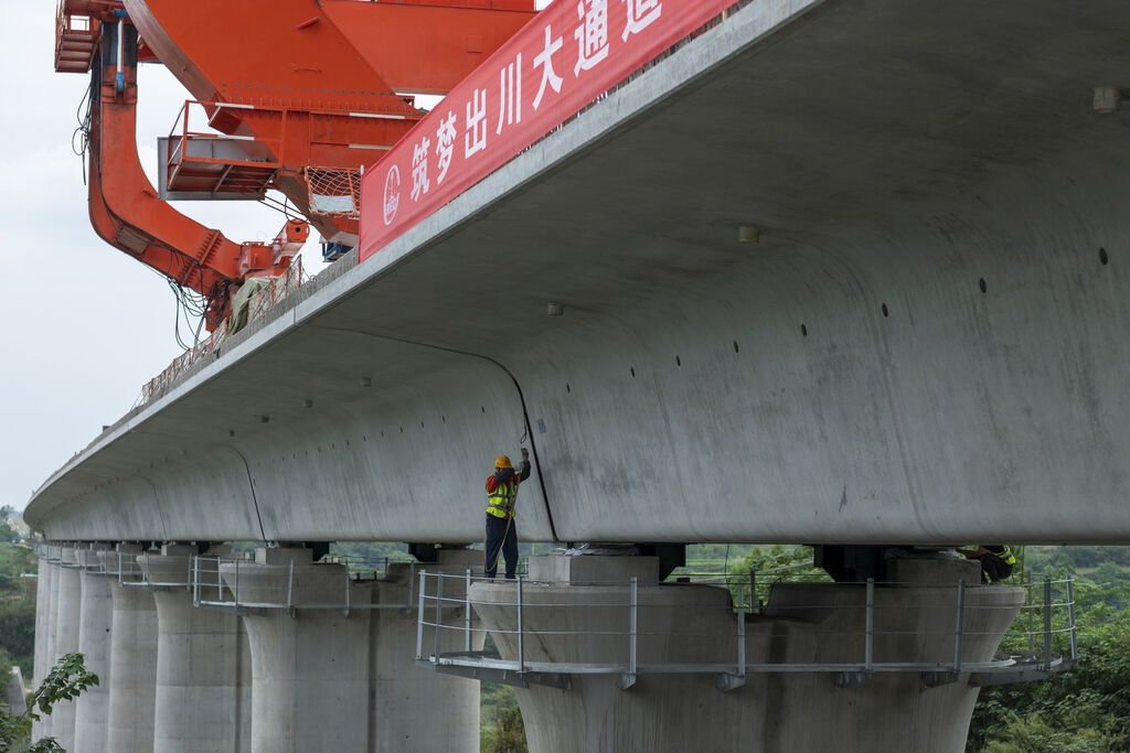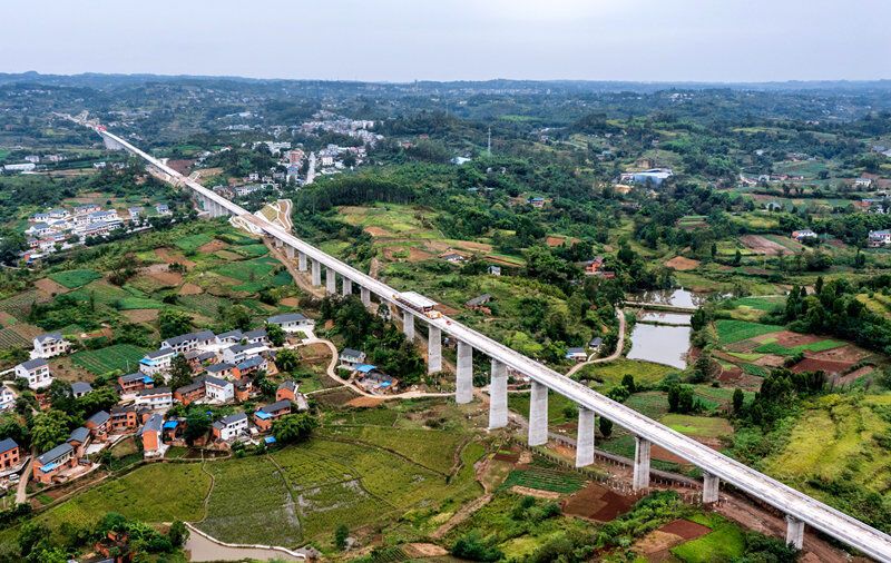 成蘭鐵路公司成自宜高鐵指揮部指揮長張宗偉介紹,目前,成自宜高鐵全線累計完成箱梁架設(shè)75%,預計今年底開始全線鋪軌,2023年全線建成通車。