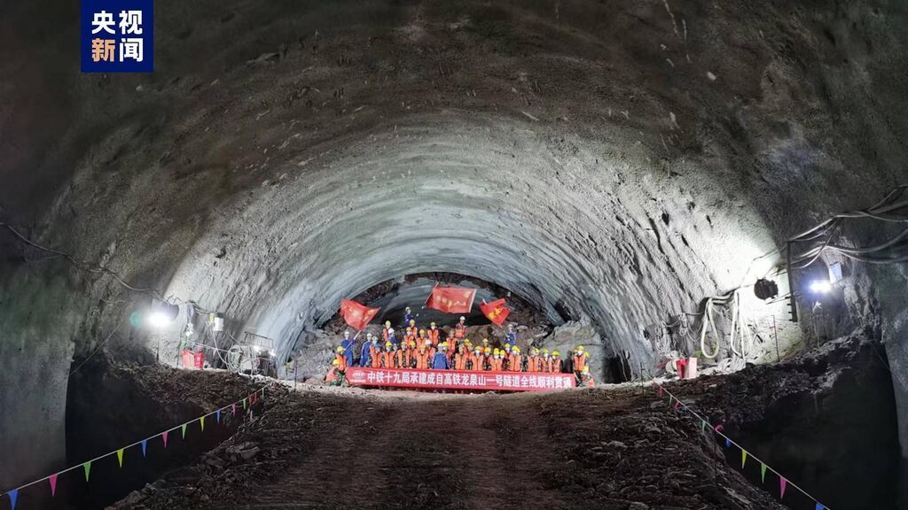 今天(10月19日)8時(shí)58分,隨著最后1米拱部巖體被鑿?fù)?,成都至自貢至宜賓高速鐵路(簡稱成自宜高鐵)全線控制性工程龍泉山一號(hào)隧道順利貫通,為成自宜高鐵全線貫通打下堅(jiān)實(shí)基礎(chǔ)。