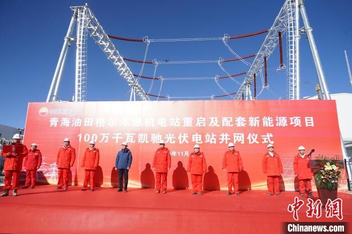 中新社西寧11月30日電 (薛皓鎂 李江寧)11月30日,青海格爾木燃機電站重啟及配套新能源項目100萬千瓦光伏電站并網(wǎng)儀式在青海烏圖美仁舉行。該項目系青藏高原和中國石油首個百萬千瓦氣電支撐新能源項目。