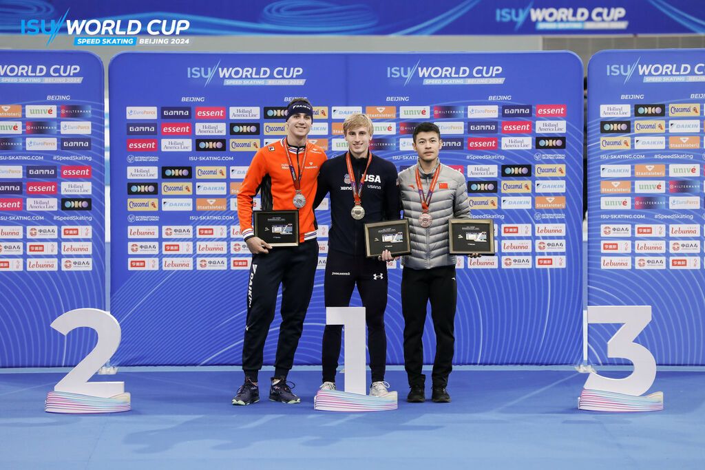 11月30日,2024-2025賽季國際滑聯(lián)速度滑冰世界杯北京站比賽展開了第二個比賽日的爭奪。中國選手寧忠?guī)r以1分07秒91的成績獲得男子1000米A組銅牌。這也是他在本站世界杯賽中獲得的第二枚獎牌。在29日進(jìn)行的男子1500米A組比賽中,寧忠?guī)r奪得銀牌。
