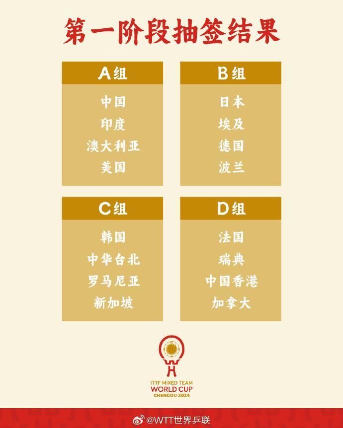 11月30日,2024年成都國際乒聯(lián)混合團體世界杯抽簽儀式舉行。中國與印度、澳大利亞、美國同在A組。