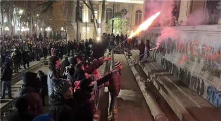 格魯吉亞總理科巴希澤28日宣布,格魯吉亞政府2028年前將不再考慮開啟加入歐盟談判的議程。同日,部分親歐盟的抗議者在第比利斯與防暴警察發(fā)生沖突。(總臺(tái)記者 張譽(yù)耀)